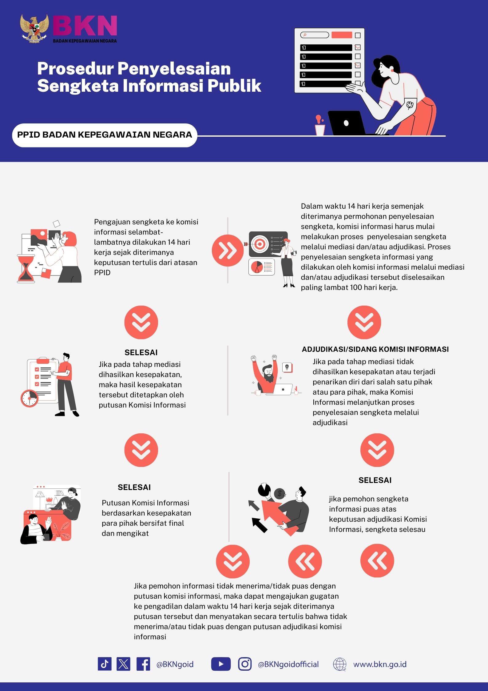 - melaporkan ketidaksesuaian proses sidang Sengketa Informasi Publik ke Sekretariat Komisi Informasi atas persetujuan Atasan PPID Badan Kepegawaian Negara; dan